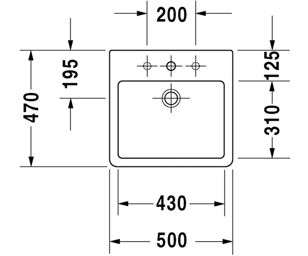 型号 045250 下表面磨光, 有安装龙头台, 背部磨光, 包括配件, 500 mm 附加信息 * 当使用虹吸管时请根据技术参数来确定排水口中心到地面的高度, 要求安装时离墙面保持一段距离 Duravit 设计 尺寸 500 mm