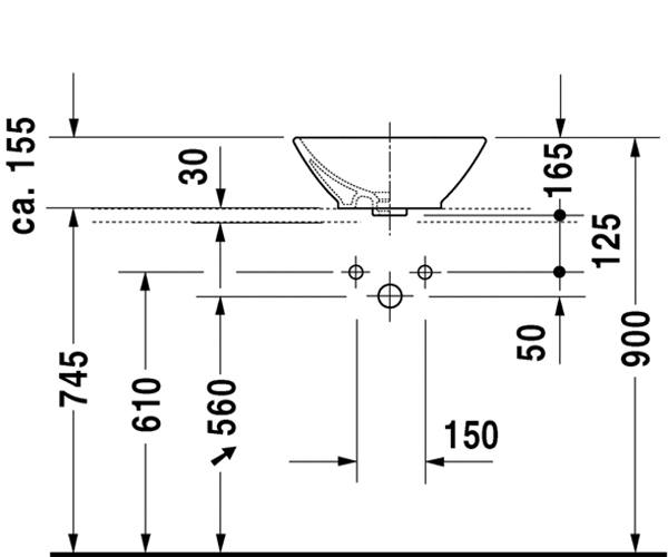 Vero 碗盆0455600000下表面磨光, 无溢水口, 无龙头安装台, 包括配件, 600 mm